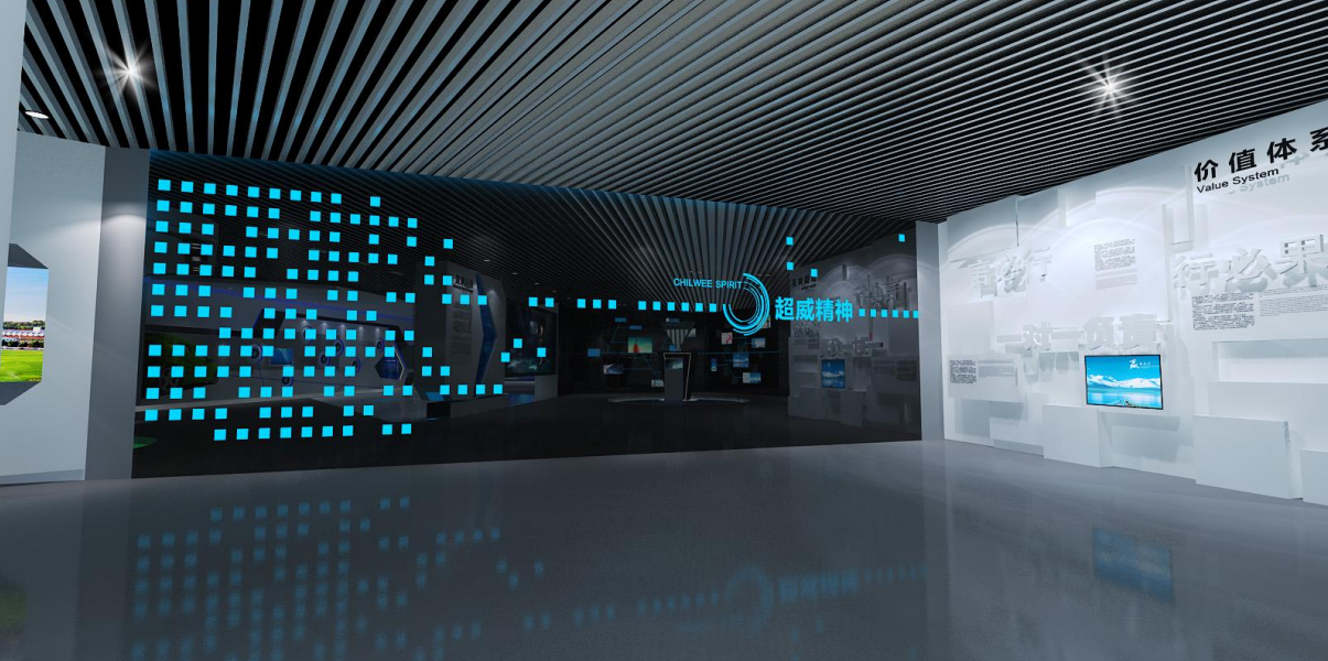 通过展板、灯箱、视频等方式展现超威集团在企业文化方面的有关情况。